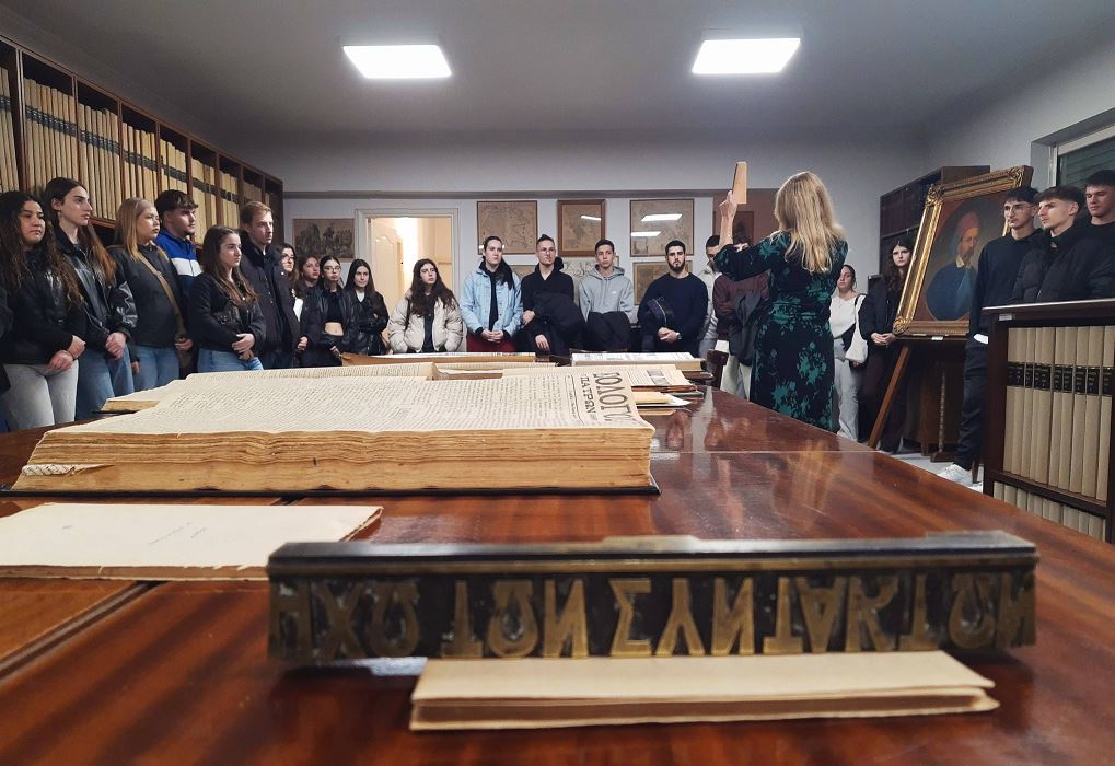 Την Πέμπτη 11 Δεκεμβρίου 2025 πραγματοποιήθηκε με επιτυχία η πρώτη δράση με επίσκεψη στο Μουσείο Τύπου της ΕΣΗΕΠΗΝ, Μαιζώνος 200. Θερμές ευχαριστίες στη διοίκηση του Μουσείου και ιδιαίτερα στην Κατερίνα Τσίρου για τη ζωντανή, τεκμηριωμένη και ουσιαστική ξενάγηση, η οποία πραγματοποιήθηκε σε δύο ομάδες και μέσα από τα εκθέματα και το αρχειακό υλικό έγινε γνωριμία με τις δημιουργίες της τυπογραφίας και των γραφικών τεχνών στην Πάτρα. Ιδιαίτερη σημασία είχε η παρουσία φοιτητών του Τμήματος Διοίκησης Τουρισμού του Πανεπιστημίου Πατρών, στο πλαίσιο μνημονίου συνεργασίας. Μας τίμησαν με την παρουσία τους ο Αντιπρύτανης Ακαδημαϊκών Θεμάτων και Οικονομικών κ. Ιωάννης Βενέτης, ο Πρόεδρος του Τμήματος Διοίκησης Τουρισμού κ. Απόστολος Ραφαηλίδης και οι εκπαιδευτικοί Παναγιώτα Βάθη-Σαράβα και Μαρία Αργυροπούλου.