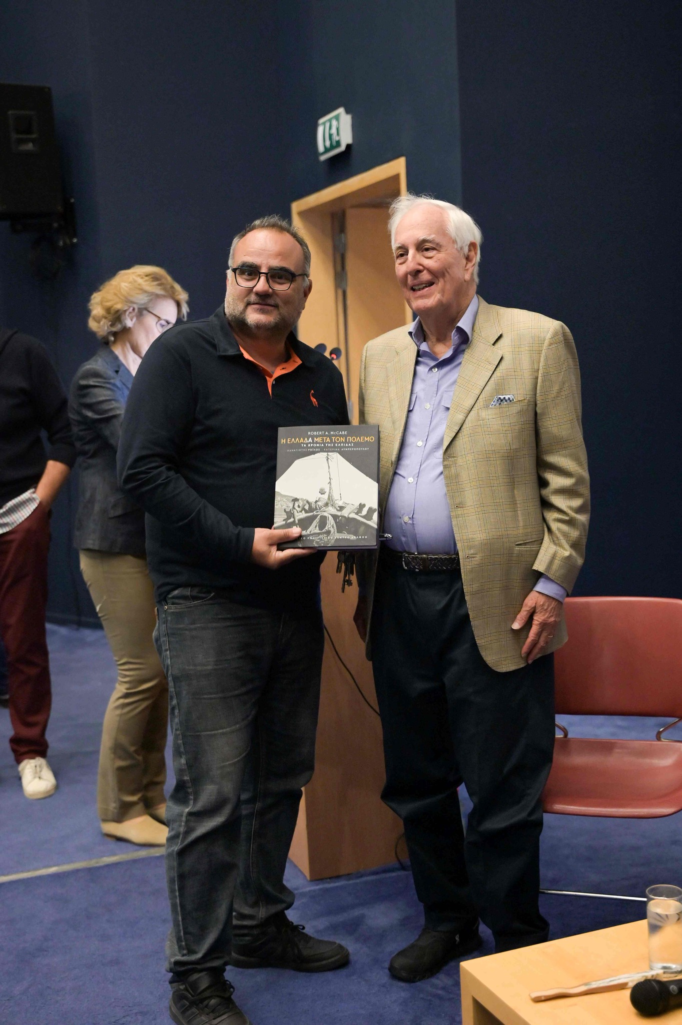 Την εκδήλωση χαιρέτησε επίσης η δημοσιογράφος Κατερίνα Λυμπεροπούλου, η οποία ανέφερε πως «Με πυξίδα το έργο του RobertMcCabe δουλέψαμε οι συγγραφείς της έκδοσης ” Η Ελλάδα μετά τον πόλεμο. Τα χρόνια της ελπίδας” (Εκδ. Πατάκη/ AbbevillePress, 2023) στην πολύμηνη, τόσο αποδοτική κι αξέχαστη συνεργασία μας – πόσο μεγάλη τιμή, αλήθεια, να δουλεύω μαζί με τον RobertMcCabe και τον καθηγητή του Harvard, Πρόεδρο του Ευρωπαϊκού Πολιτιστικού Κέντρου Δελφών, Παναγιώτη Ροϊλό! Κι έχοντας τη σημασία αυτής της παρακαταθήκης του έργου του Robert κατά νου, συνέλεξα μαρτυρίες Πατρινών, αναμνήσεις “από πρώτο χέρι”, αλλά κι ιστορίες που άκουσαν από άλλους σχετικά με την, μεταπολεμικά δημιουργηθείσα, Πορθμειακή γραμμή Ρίου – Αντιρρίου για να πλαισιώσω με κείμενα την σειρά φωτογραφιών του Robert από την εν λόγω γραμμή. Ένα πρωτότυπο και ξεχωριστό τμήμα της έκθεσης στο Αρχαιολογικό Μουσείο Πάτρας που δεν θα ταίριαζε πουθενά αλλού τόσο καλά όσο εδώ».